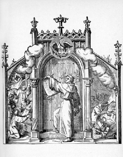 Martin Luther's Evangelical Discovery The demands of study for academic degrees and preparation for delivering lectures drove Martin Luther to study the Scriptures in depth. Luther immersed himself in the teachings of the Scripture and the early church. Slowly, terms like penance and righteousness took on new meaning. The controversy that broke loose with the publication of his 95 Theses placed even more pressure on the reformer to study the Bible. This study convinced him that the Church had lost sight of several central truths. To Luther, the most important of these was the doctrine that brought him peace with God. With joy, Luther now believed and taught that salvation is a gift of God's grace, received by faith and trust in God's promise to forgive sins for the sake of Christ's death on the cross. This, he believed was God's work from beginning to end. Luther's 95 Theses On Halloween of 1517, Luther changed the course of human history when he nailed his 95 Theses to the church door at Wittenberg, accusing the Roman Catholic church of heresy upon heresy. Many people cite this act as the primary starting point of the Protestant Reformation… though to be sure, John Wycliffe, John Hus, Thomas Linacre, John Colet, and others had already put the life’s work and even their lives on the line for same cause of truth, constructing the foundation of Reform upon which Luther now built. Luther's action was in great part a response to the selling of indulgences by Johann Tetzel, a Dominican priest. Luther's charges also directly challenged the position of the clergy in regard to individual salvation. Before long, Luther’s 95 Theses of Contention had been copied and published all over Europe. Here I Stand Luther's Protestant views were condemned as heretical by Pope Leo III in the bull Exsurge Domine in 1520. Consequently Luther was summoned to either renounce or reaffirm them at the Diet of Worms on 17 April 1521. When he appeared before the assembly, Johann von Eck, by then assistant to the Archbishop of Trier, acted as spokesman for Emperor Charles the Fifth. He presented Luther with a table filled with copies of his writings. Eck asked Luther if he still believed what these works taught. He requested time to think about his answer. Granted an extension, Luther prayed, consulted with friends and mediators and presented himself before the Diet the next day.